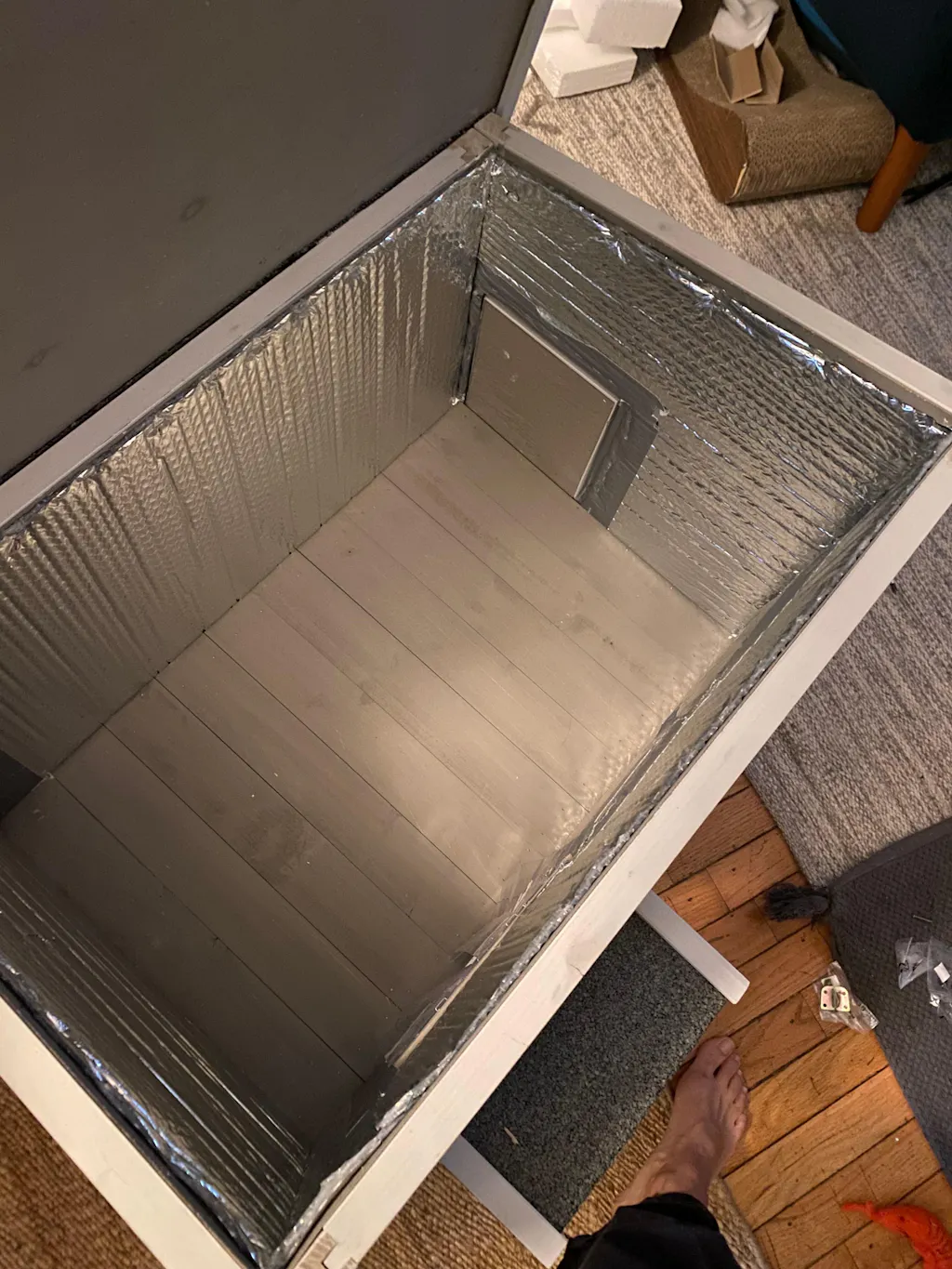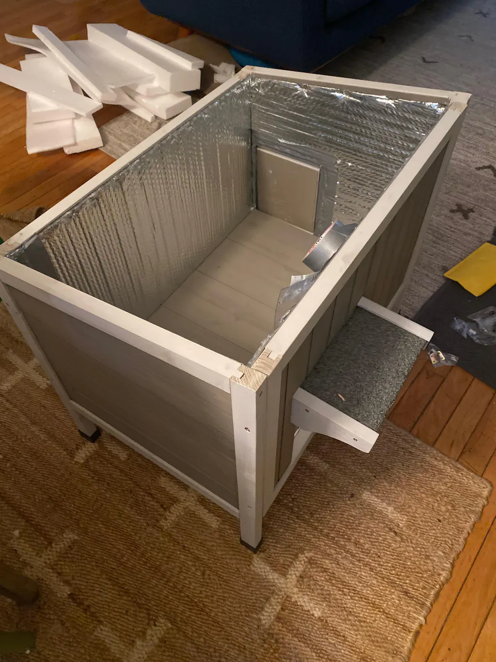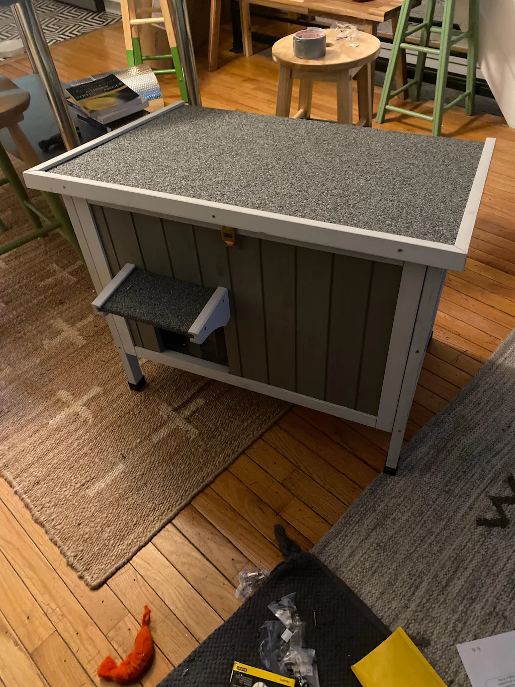 The cat house is nice. The smell from is is very strong. Hopefully airing it out will help. With out straw and other insulation. It will not keep them warm.