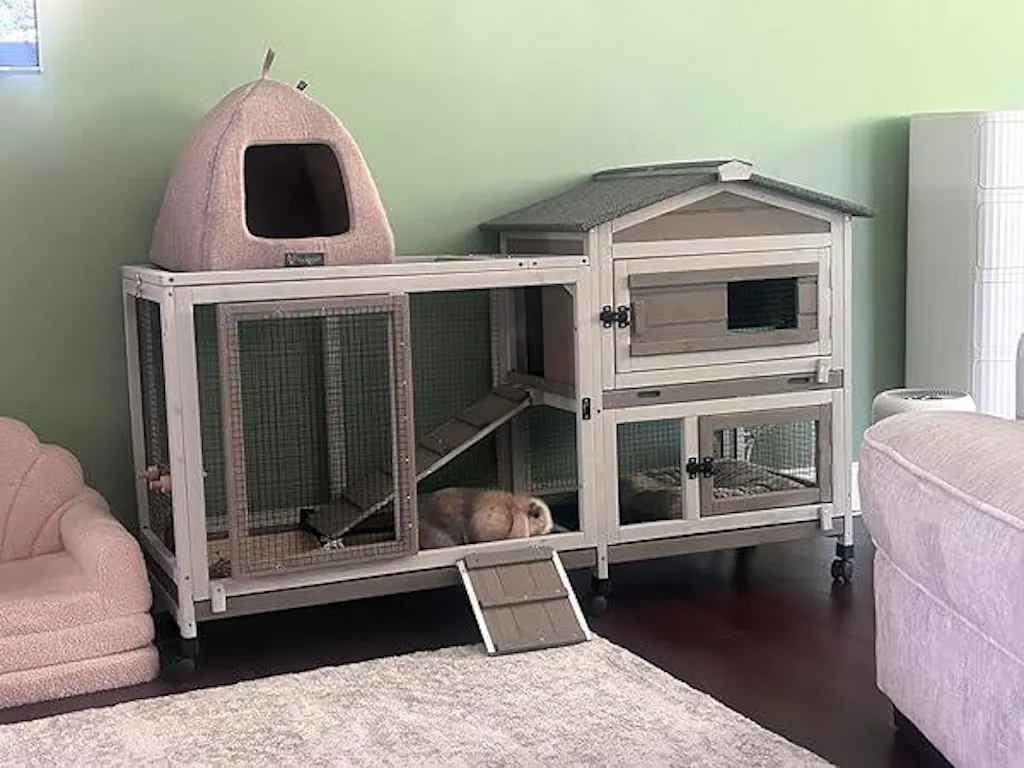 PETSCOSSET Deluxe Rabbit Hutch: Spacious, Mobile & Weatherproof Shelter for Small Pets