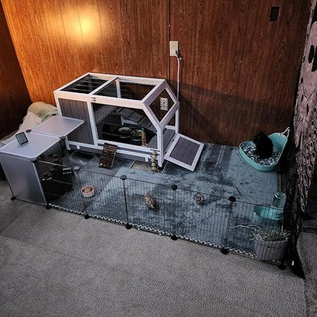 Equipped with four 360° swivel caster wheels, this portable bunny cage is easy to move and locks in place for stability. The pre-drilled holes and clearly labeled parts make assembly quick—about 30 minutes with simple instructions.